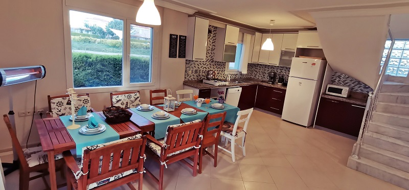 Mutfak: Buzdolabı, yemek masası, ankastre ocak seti, buzdolabı, mikrodalga fırın, kettle (su ısıtıcısı), ekmek kızartma makinesi ve rahatınız için düşünülmüş tüm mutfak envanterleri mevcuttur.