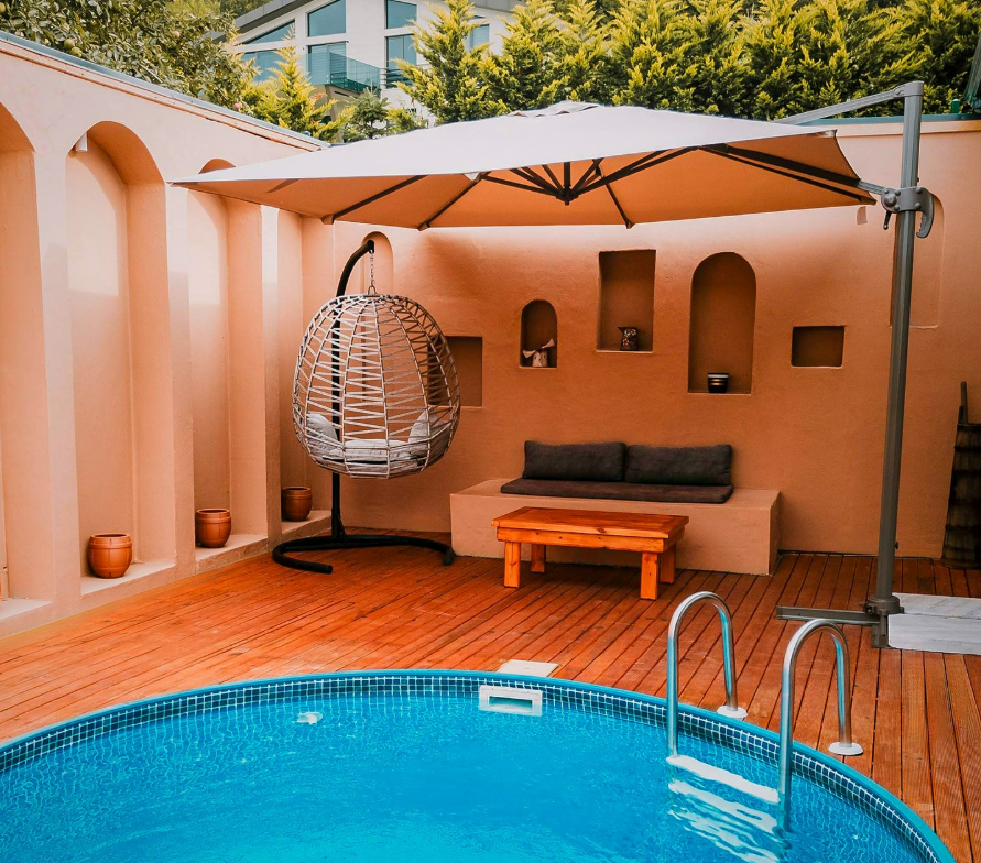 Yılın her döneminde kullanabileceğiniz tamamen size ait bir havuz alanıyla dört mevsim tatilin tadını çıkarın.