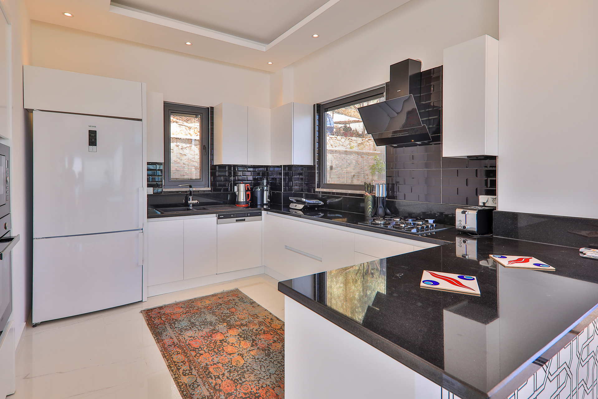 Mutfak: Buzdolabı, çamaşır makinesi, bulaşık makinesi, elektrikli su ısıtıcısı, mikrodalga fırın, ekmek kızartma makinesi, fırın, 4 lü ocak, yemek masası, yemek takımı ve mutfak araç gereçleri bulunmaktadır.