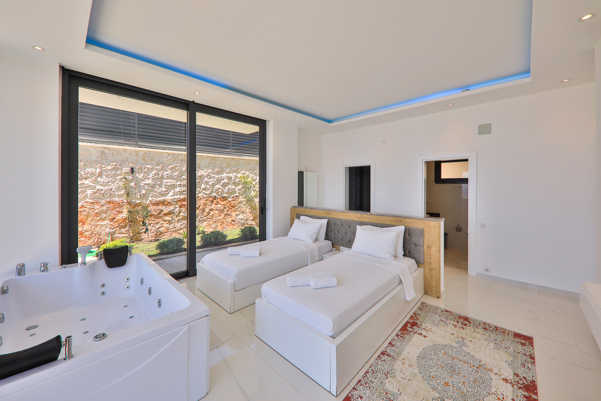 3. yatak odası : 2 tek kişilik yatak, WC + Jakuzi, Klima