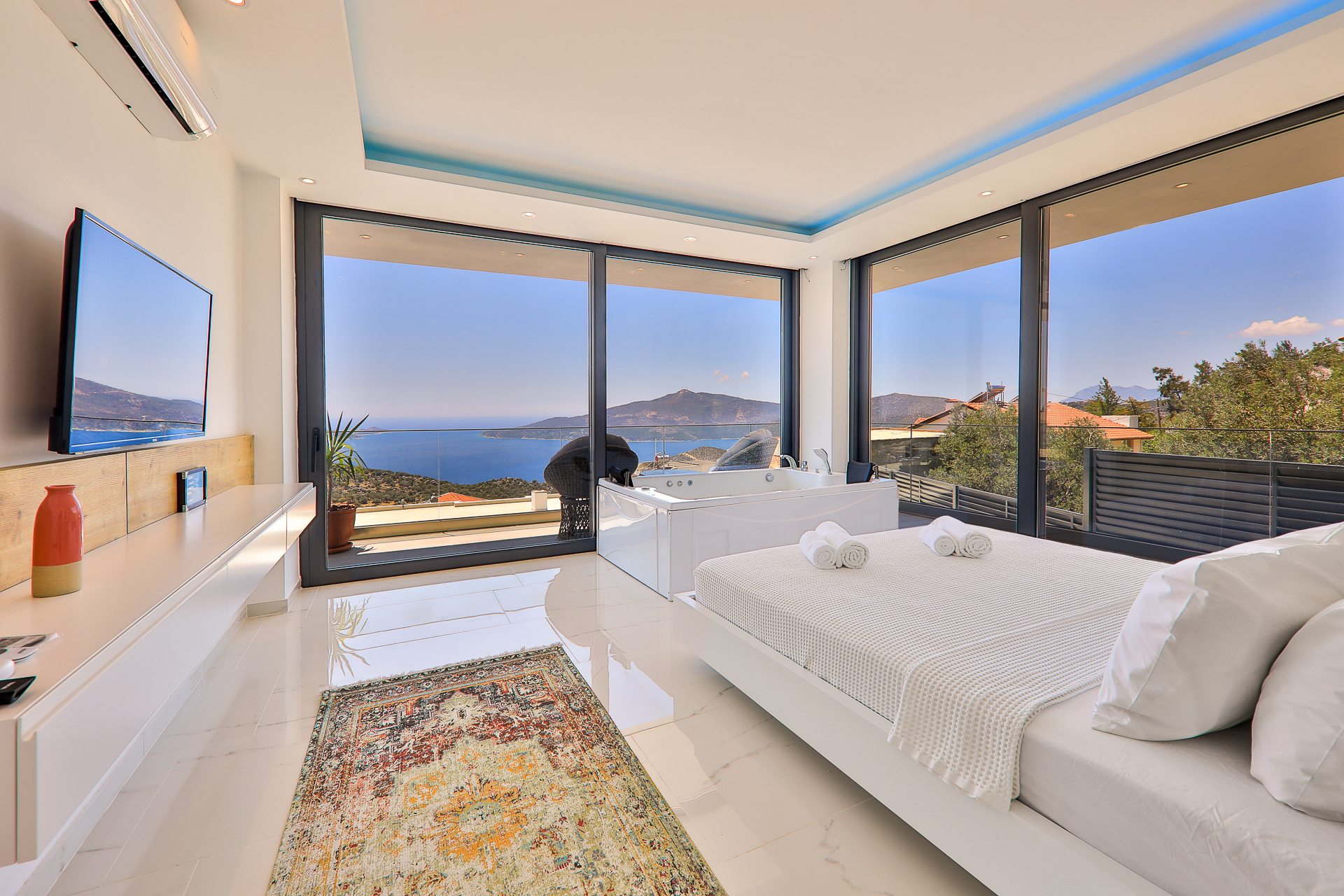 1. yatak odası : 1 çift kişilik yatak, WC + Jakuzi, Klima, TV