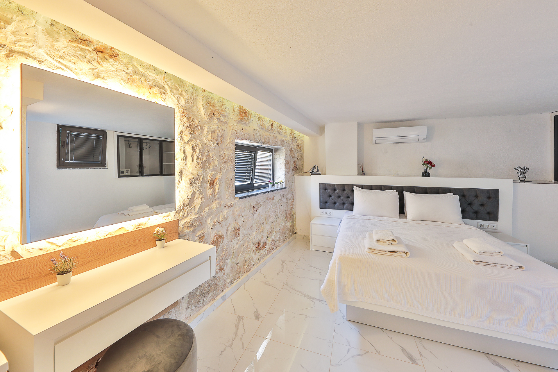 3. Yatak Odası : Çift kişilik bir adet yatak, elbise dolabı, komodin, klima, banyo ve tuvalet bulunmaktadır.