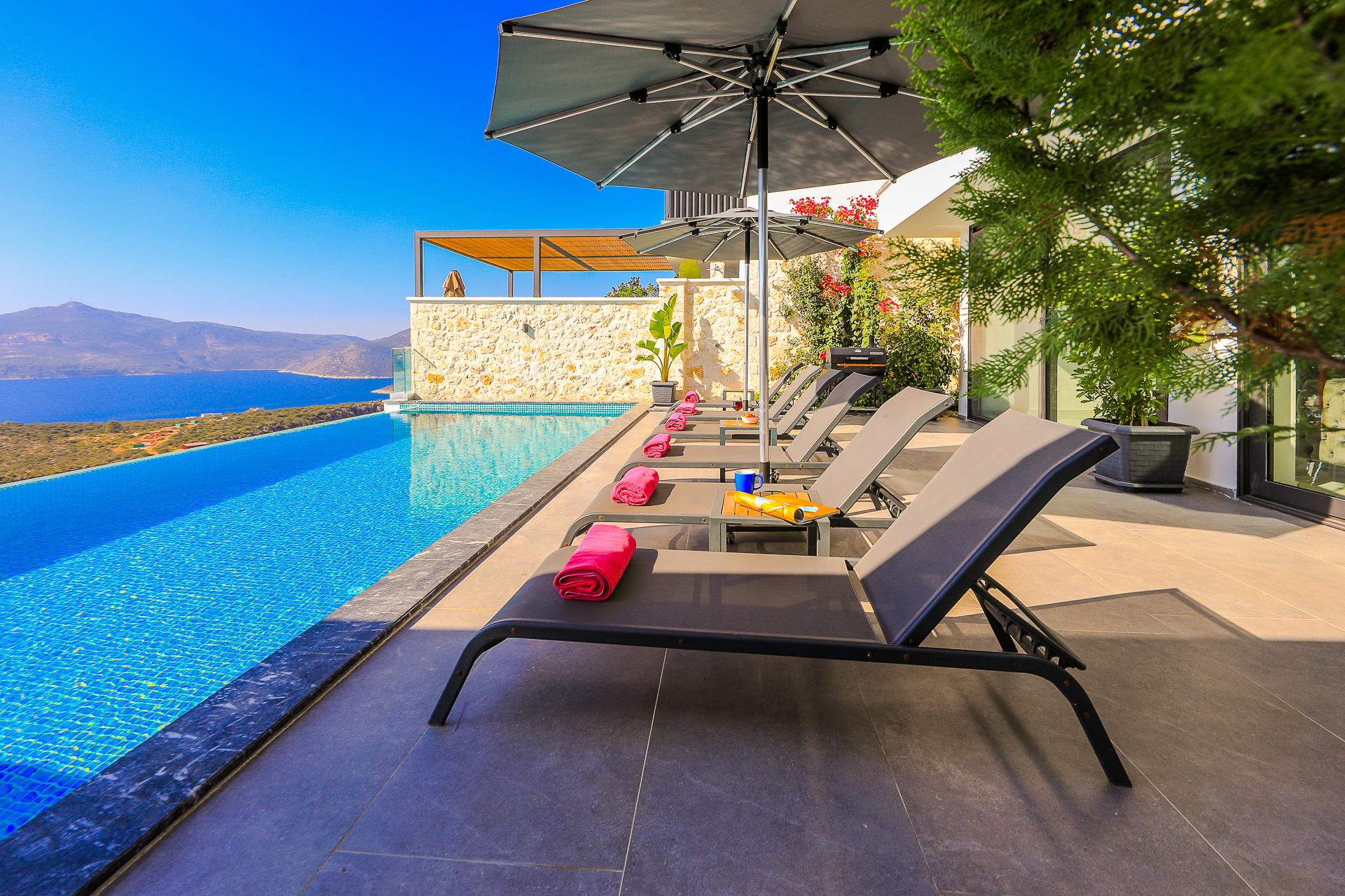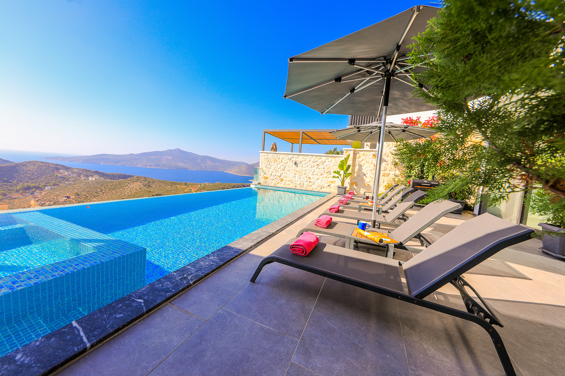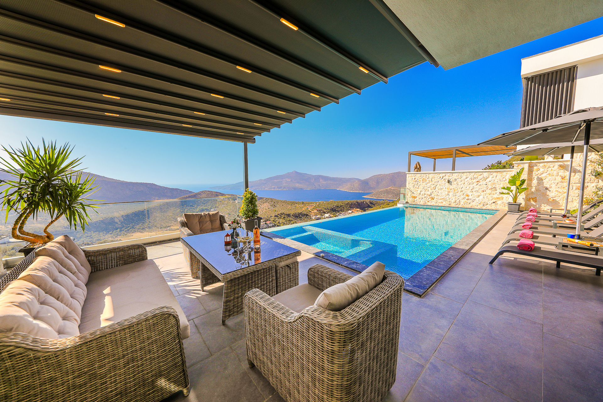 Villa Kai; lüks villa kiralama talepleriniz için size tavsiye edeceğimiz ve Kalkan, Ulugöl mevkii'nde bulunan lüks tatil villalarından bir tanesidir. Villa, 3 yatak odası, özel havuzu, jakuzisi, doğa ve deniz manzaralı konumu ile 6 kişilik tesettürlü aileler ve arkadaş grupları için ideal bir villa tatili seçeneği olacaktır.