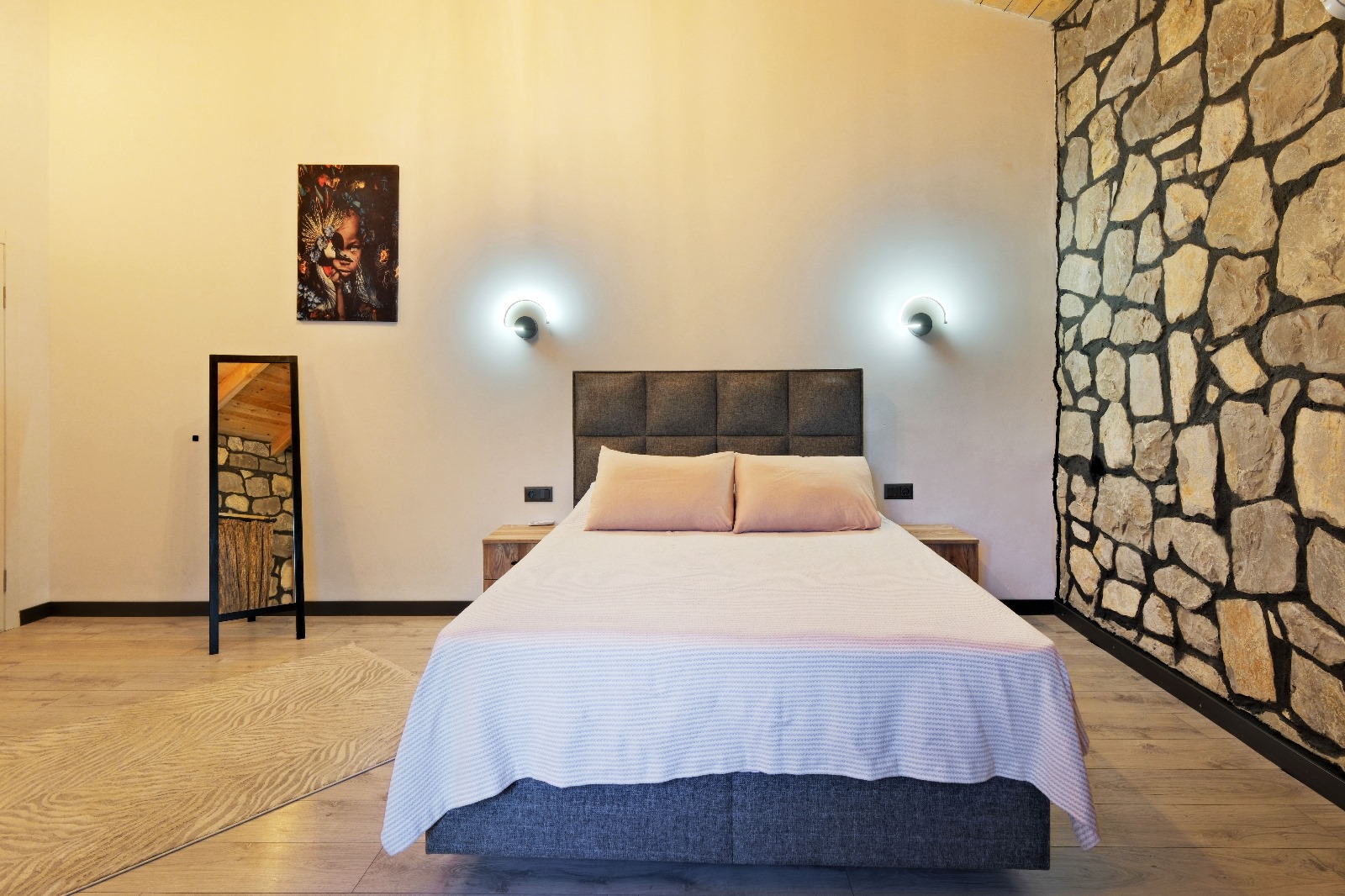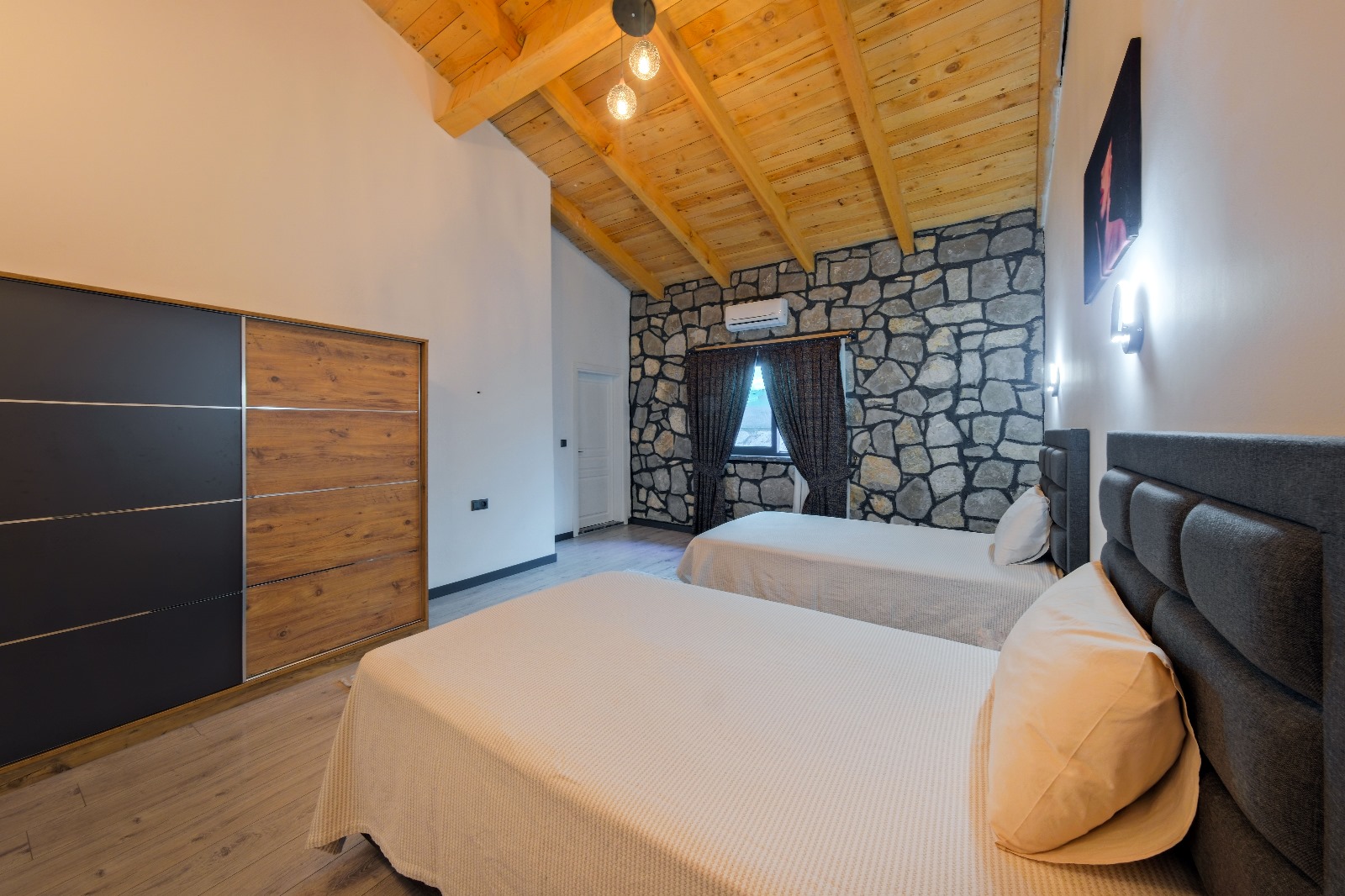 1. Yatak odası; 1 çift kişilik yatak, Gardırop, Komodin, Jakuzi,Ebeveyn Banyosu, Klima, Makyaj masası,Bebek Yatağı