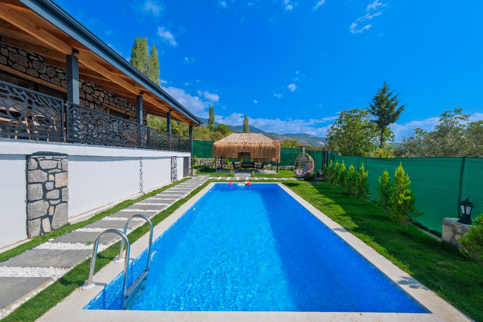 Villa Lidya; villa kiralama talepleriniz için tercih edeceğiniz Seydikemer, Arsaköy'de bulunan tatil villaları içinde en fazla tercih edilen tatil villalarımızdan bir tanesidir. Villa, 2 yatak odası, özel havuzu, doğa ve vadi manzarası ile yeşil asma üzüm mevyelerinin arasında 4 kişilik tesettürlü aileler ve arkadaş grupları için ideal bir villa tatili seçeneği olacaktır. Son derece modern olarak dizayn edilip lüks mobilyalar ile döşenmiş olan Villa Lidya bir tatil villasında ihtiyaç duyabileceğiniz her türlü konfora sahiptir.