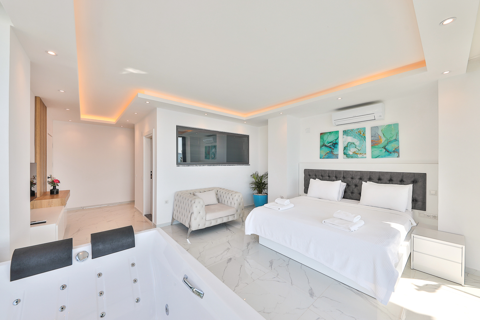 1. Yatak Odası : Çift kişilik bir adet yatak, elbise dolabı, komodin, klima, jakuzi, banyo ve tuvalet bulunmaktadır.