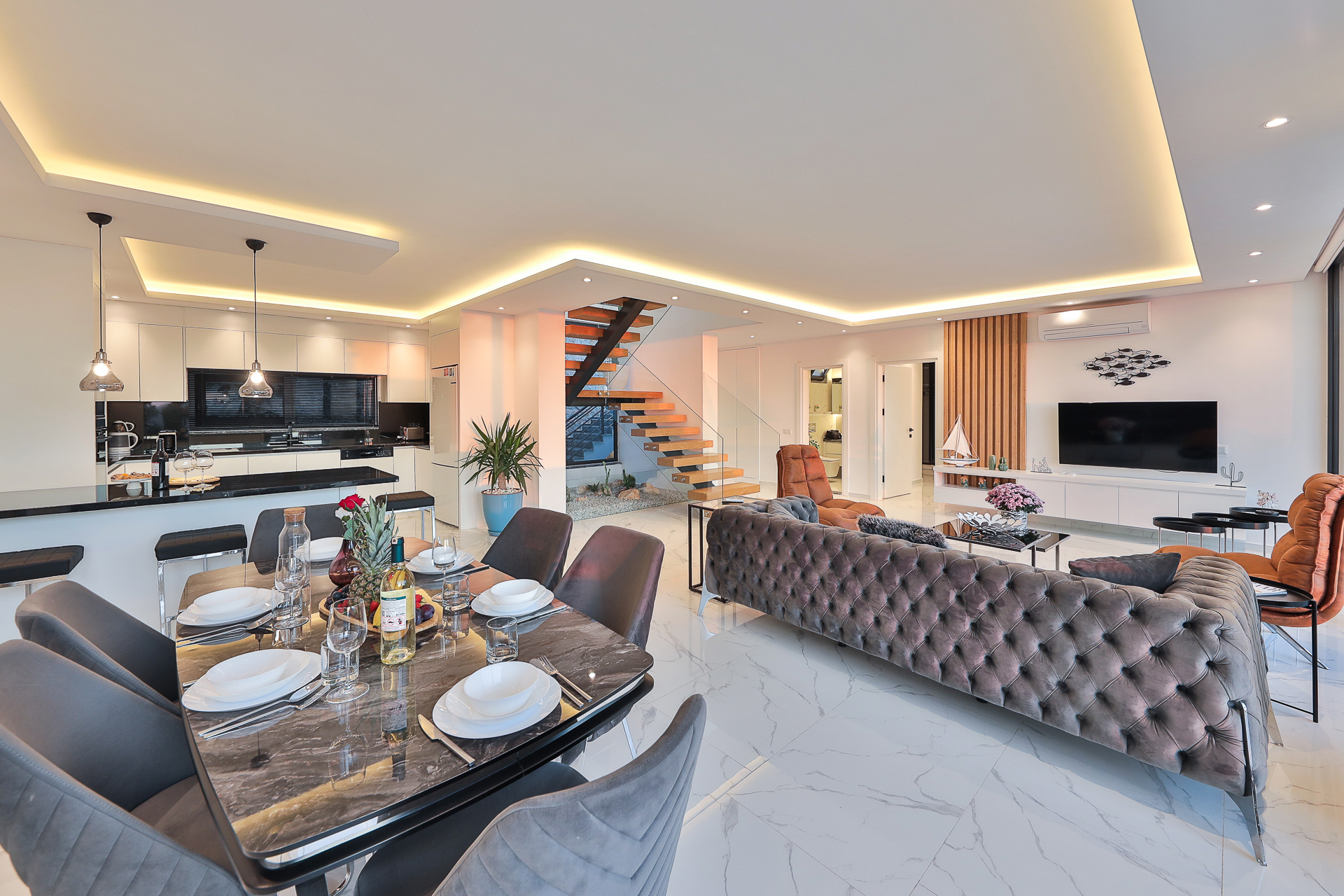 Salon: Oturma grubu, yemek masası ve sandalyeler, açık mutfak, tv, klima, sehpa bulunmaktadır.