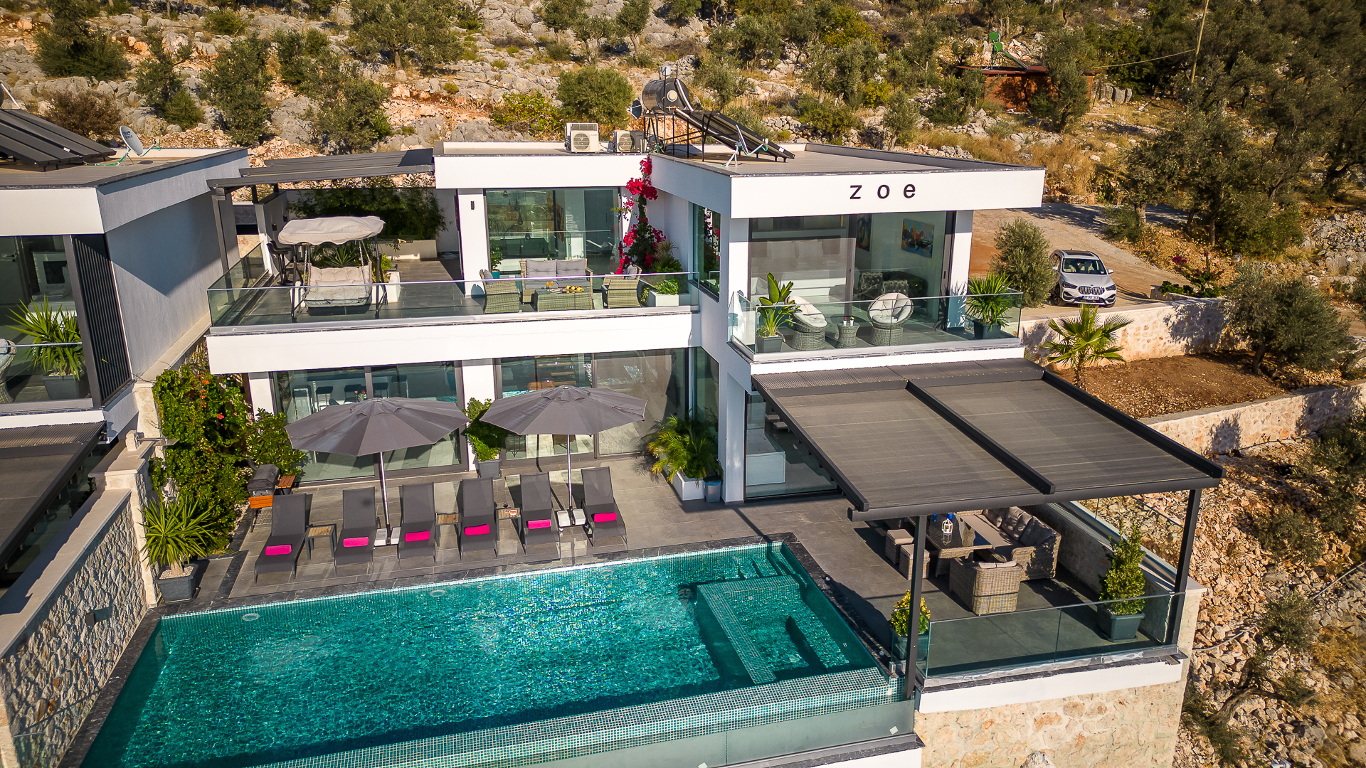 Villa Zoe; lüks villa kiralama talepleriniz için size tavsiye edeceğimiz ve Kalkan, Ulugöl mevkii'nde bulunan lüks tatil villalarından bir tanesidir. Villa, 3 yatak odası, özel havuzu, jakuzisi, doğa ve deniz manzaralı konumu ile 6 kişilik tesettürlü aileler ve arkadaş grupları için ideal bir villa tatili seçeneği olacaktır.