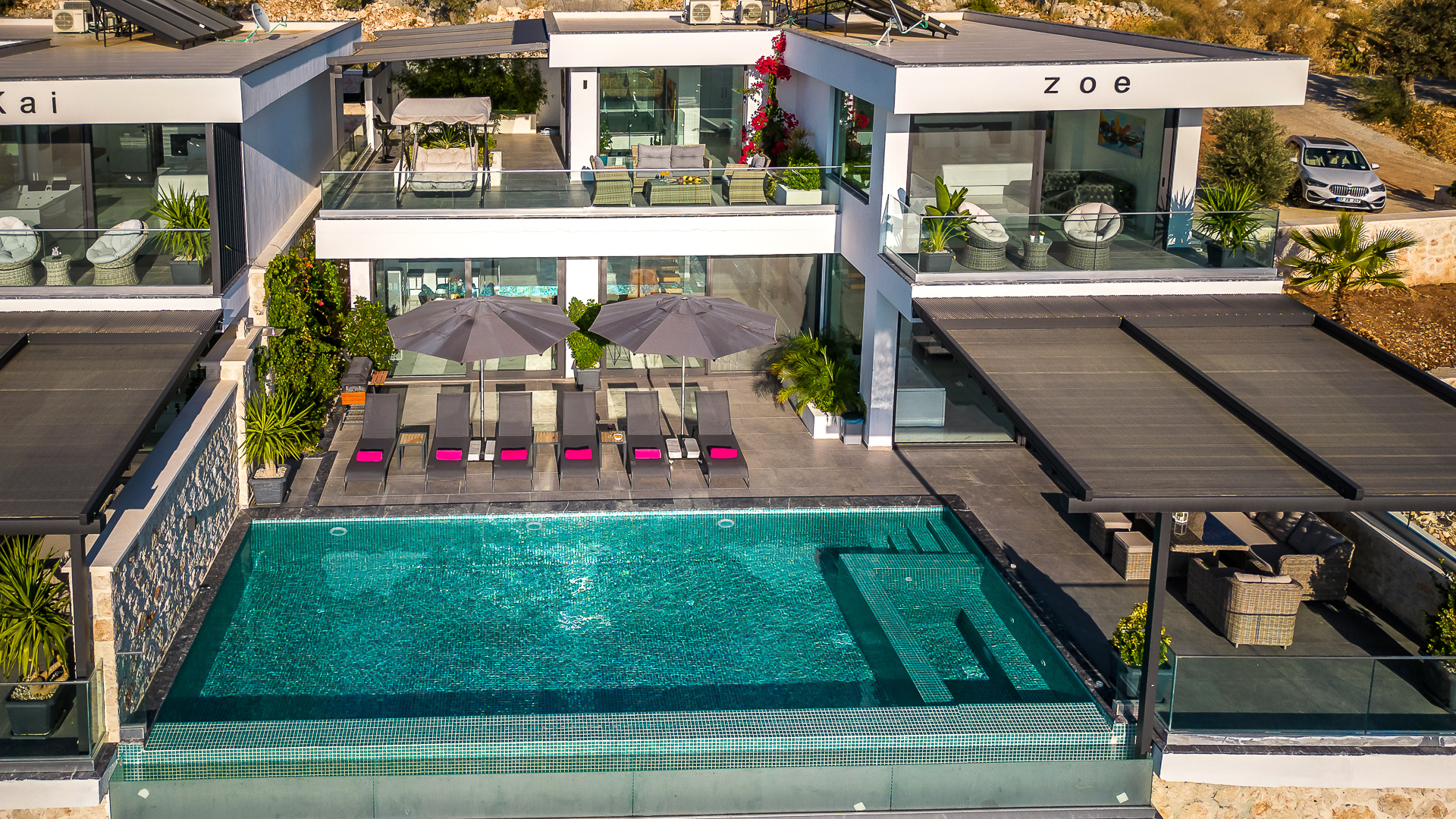 Not 2: Ayrıca sistemimizde bulunan Villa Zoe, Villa Soi, Villa Miu ve Villa Kai çok yakın konumda olduğu için kalabalık aile ve arkadaş grupları birden fazla villa kiralama şansı bulabileceklerdir.